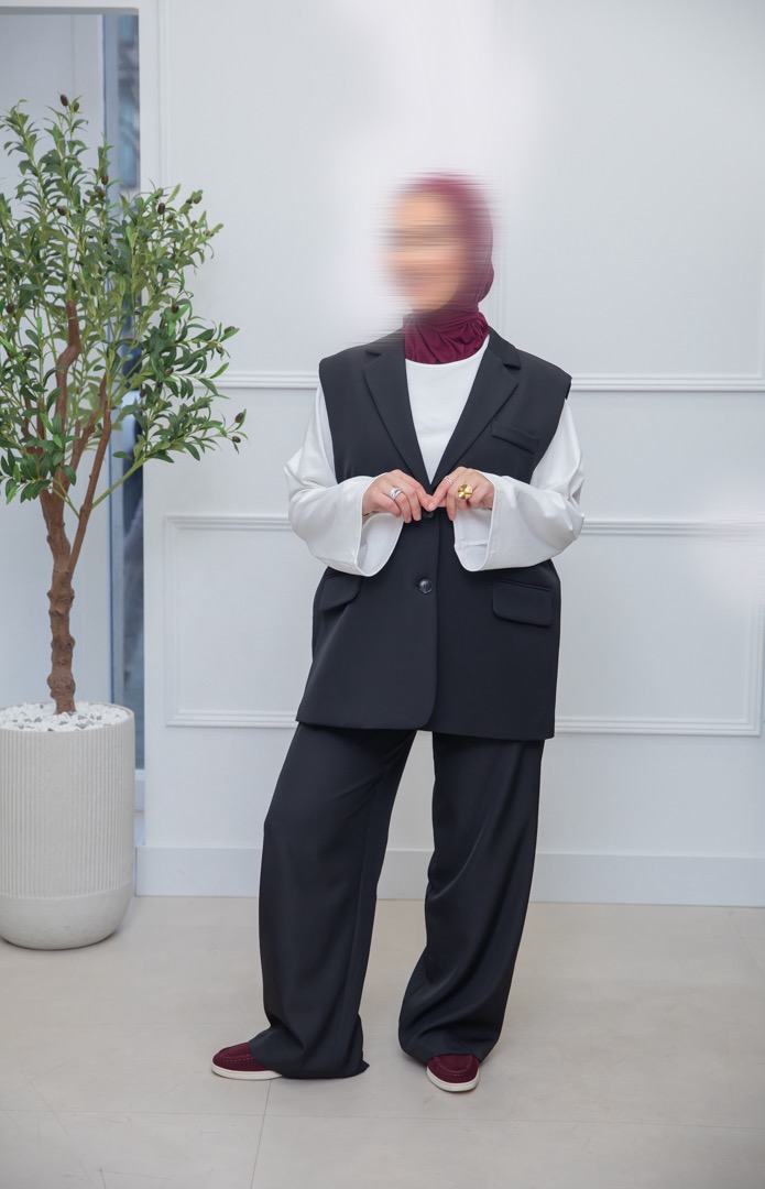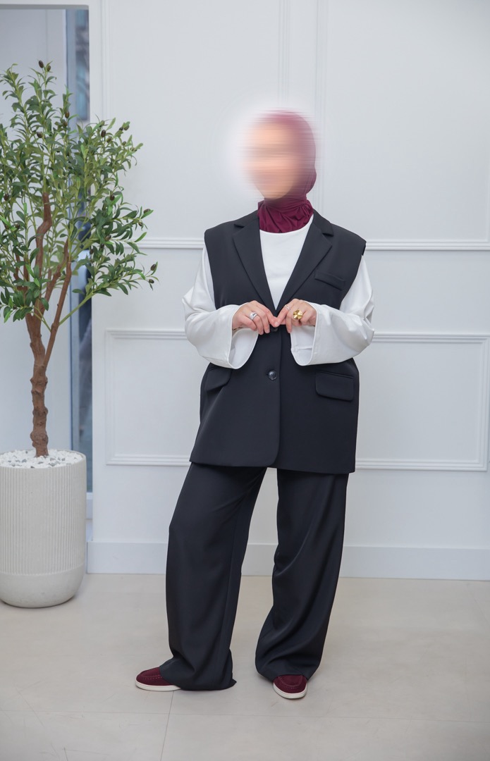 MODEL IS 1M65 EN DRAAGT MAAT S. DE ACHTERKANT HEEFT EEN OPENING.