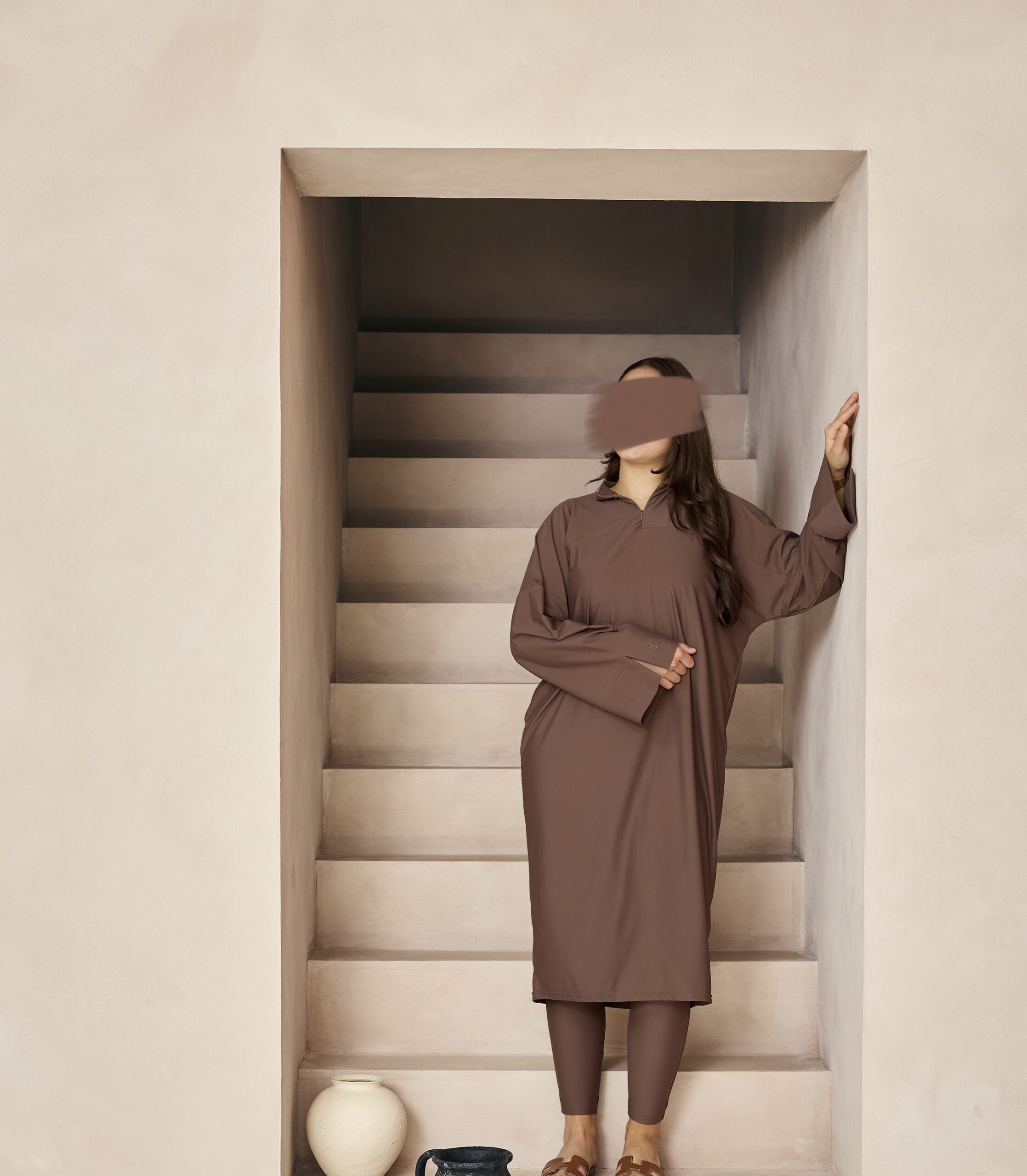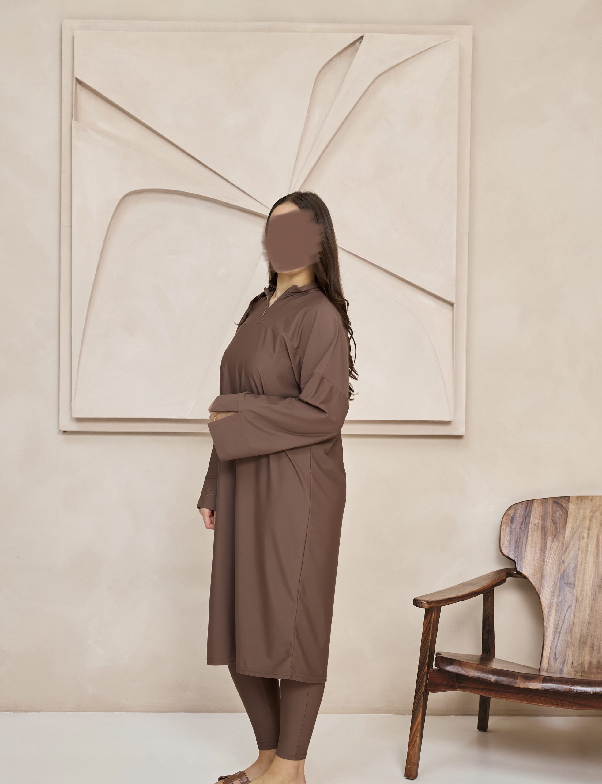 PREMIUM BURKINI MET SPLIT DARKBROWN LONG