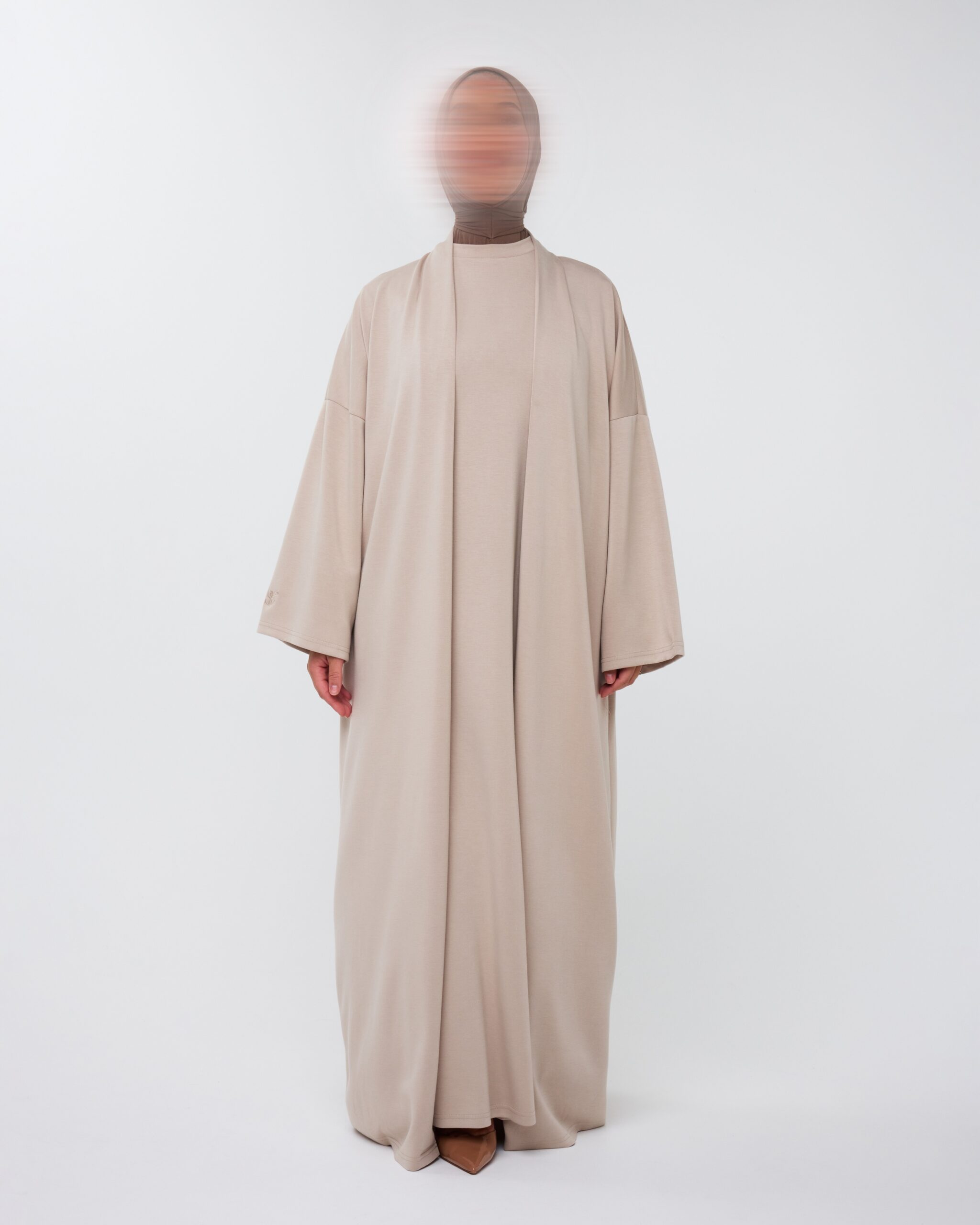 DEZE PRACHTIGE TWEEDELIGE SET BESTAAT UIT EEN COMFORTABELE JURK MET BIJPASSENDE VEST. DE JURK HEEFT EEN FIJN STOFJE DIE SOEPEL VALT. DE BINNENJURK HEEFT MOUWEN. LENGTE JURK: 143CM