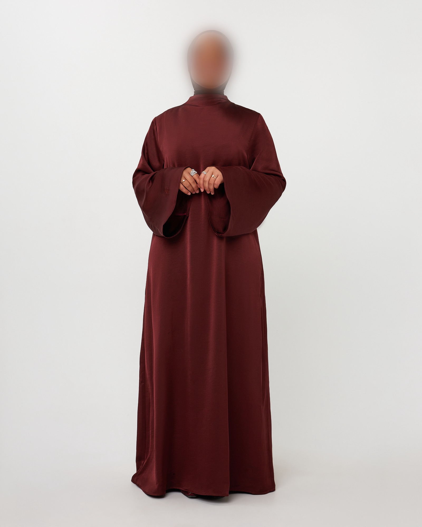 MOOIE ELEGANTE SATIJNEN JURK MET WIJDE MOUWEN. HET MODEL IS 1M57 EN DRAAGT MAAT SM. 100% POLYESTER