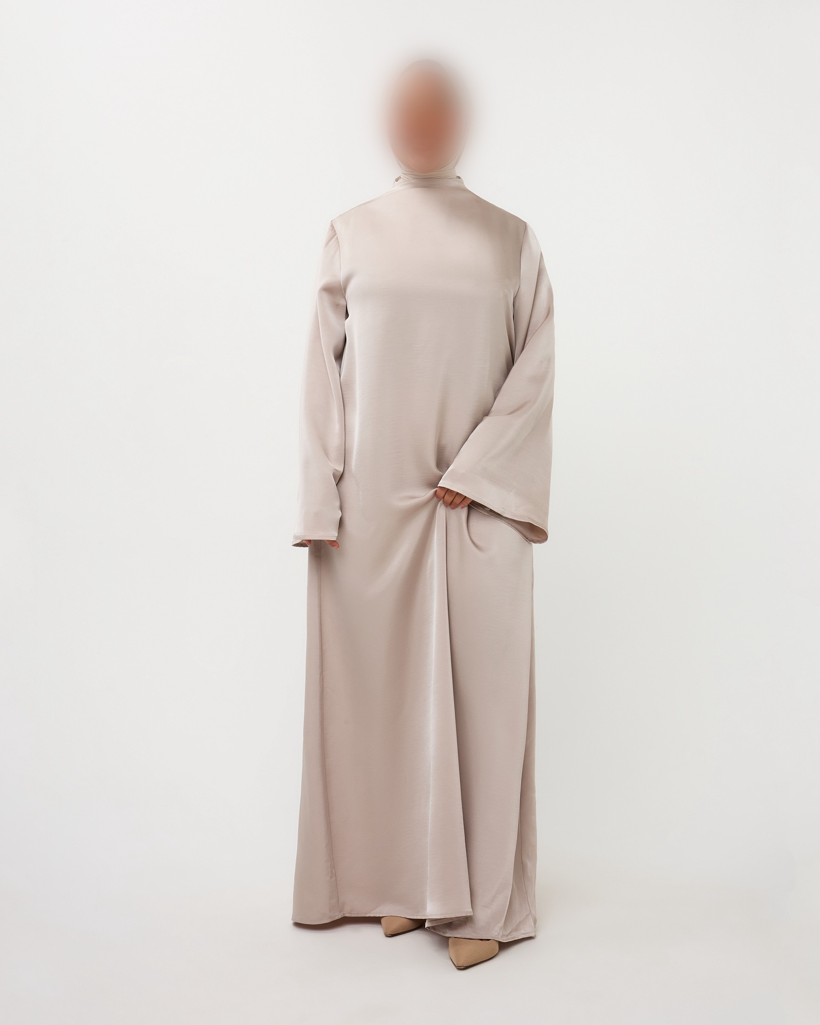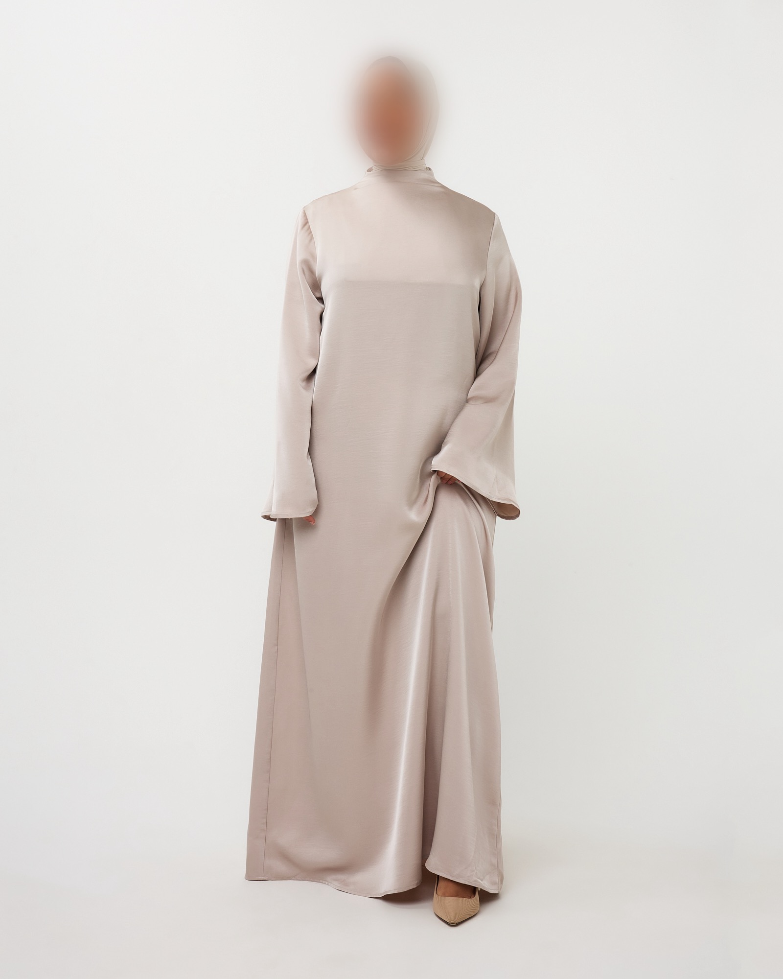 MOOIE ELEGANTE SATIJNEN JURK MET WIJDE MOUWEN. HET MODEL IS 1M57 EN DRAAGT MAAT SM. 100% POLYESTER
