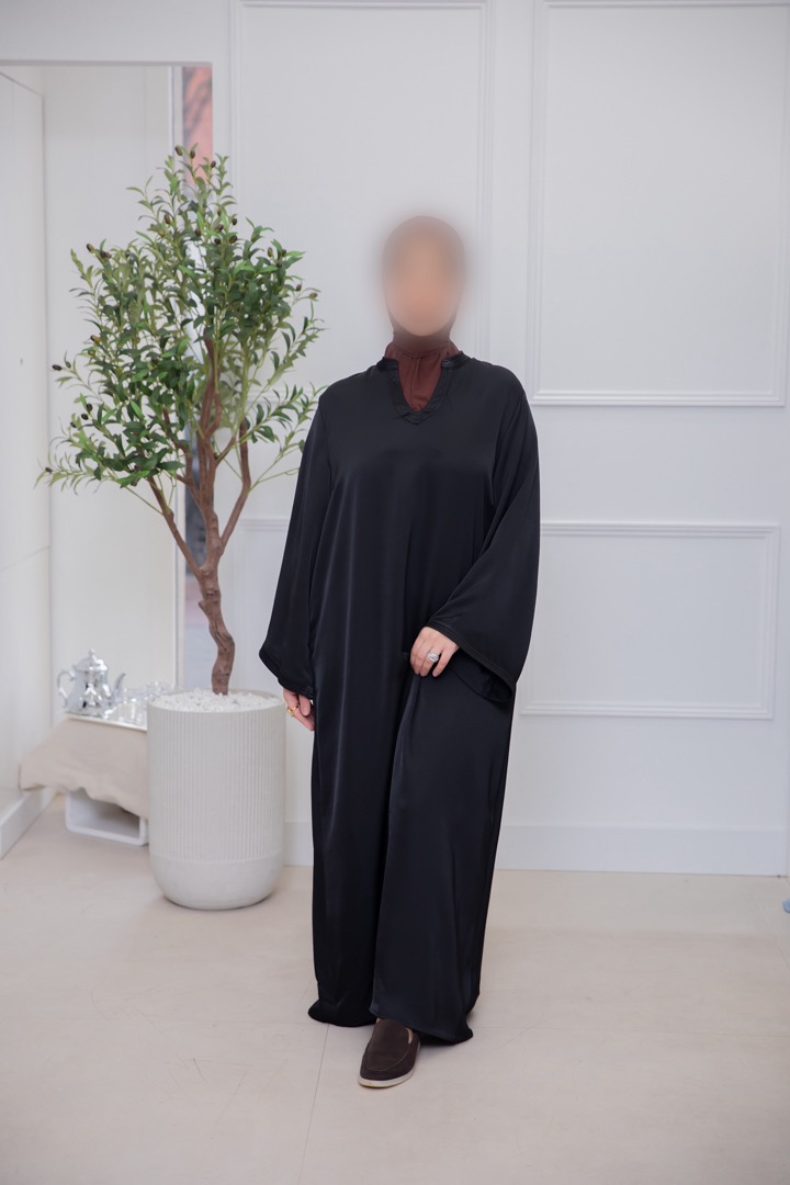 SATIN DRESS MET HOGE KRAAG